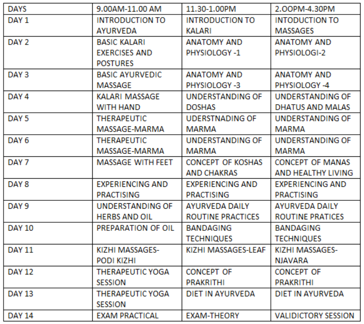 KALARI AND MARMA MASSAGE-CRASH COURSE (14 DAYS)